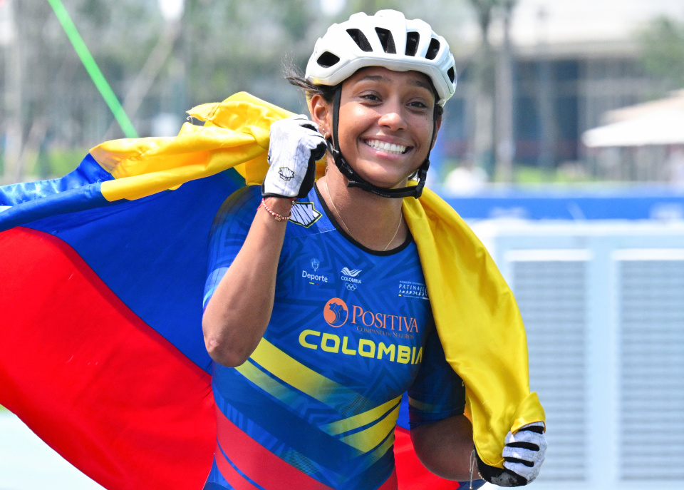8月12日,冠军哥伦比亚选手蒂姆斯· 阿丽萨赛后庆祝。新华社记者 谢剑飞 摄