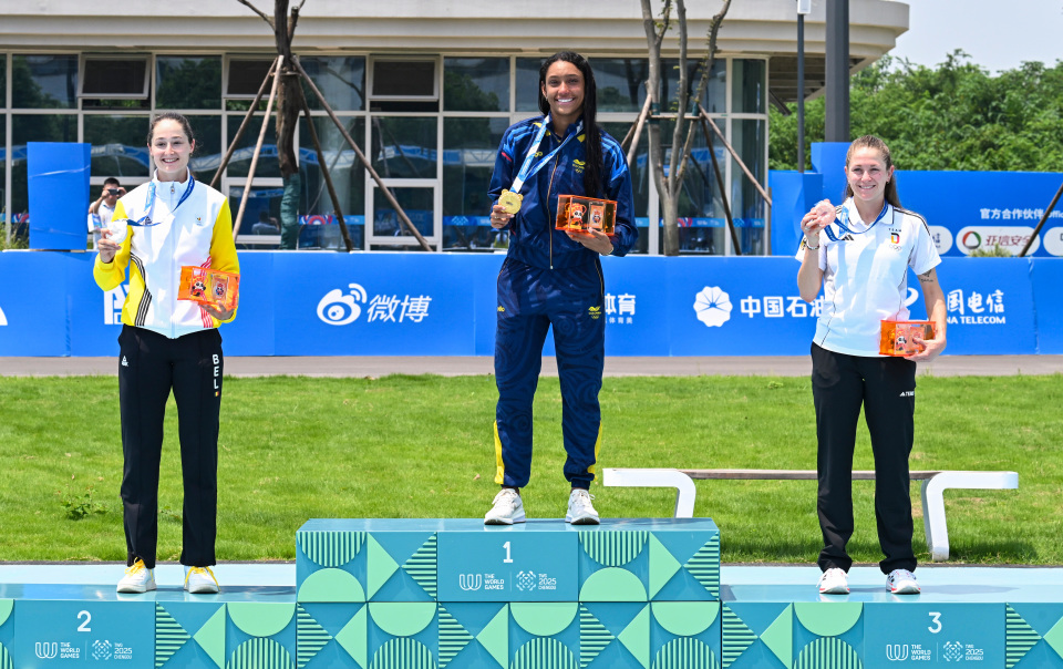 当日,2025年成都世运会速度轮滑女子公路赛(单圈争先)决赛在成都舒悦公园举行。